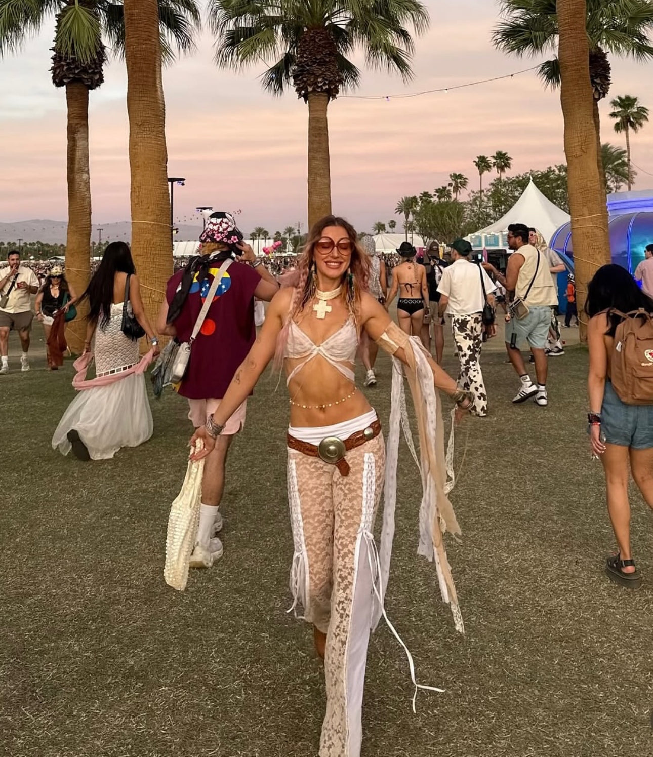 Lace eyelet festival pants